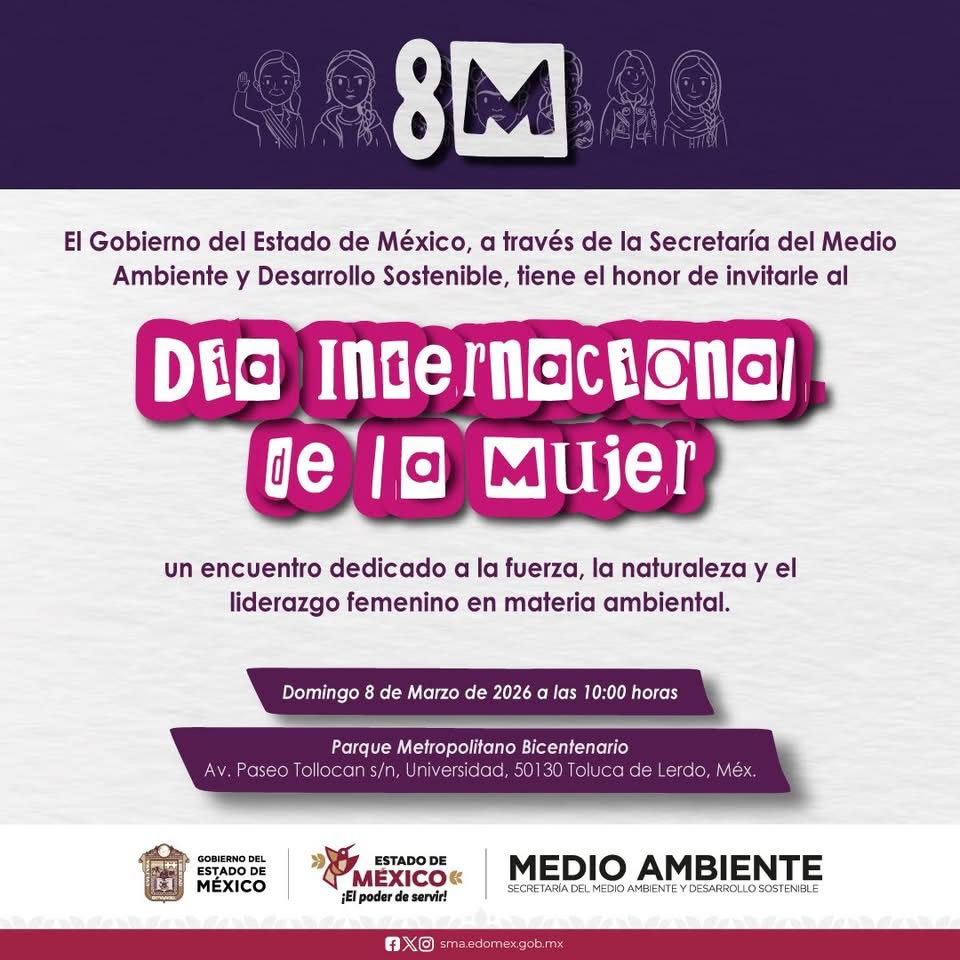 Convoca Gobierno del EdoMéx a conmemorar el Día Internacional de la Mujer con actividades ambientales en Toluca