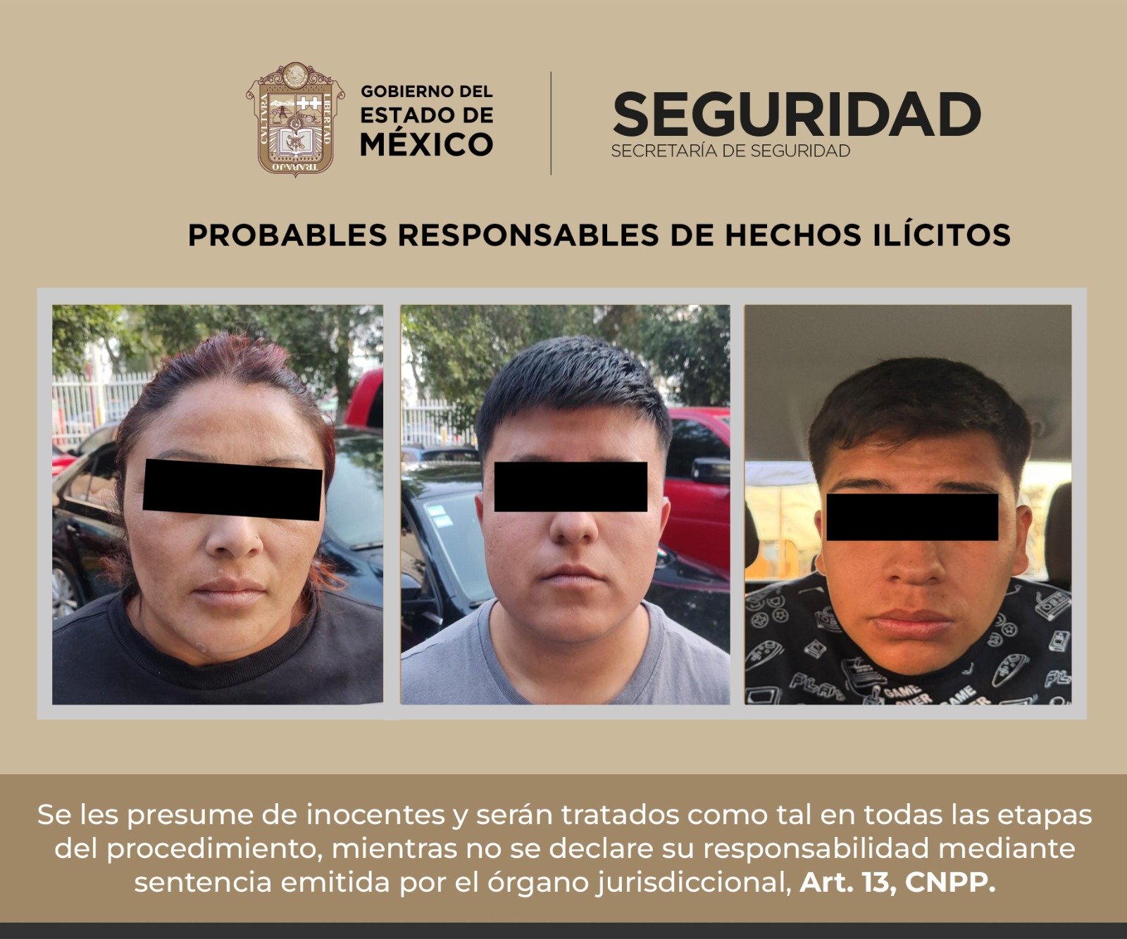 Derivado de trabajos de investigación en gabinete y en campo, elementos de la Secretaría de Seguridad del Estado de México (SSEM) y policías municipales detuvieron a tres personas probables implicadas en delitos contra la salud, y quienes tenían en su posesión dos motocicletas al parecer utilizadas para dejar un mensaje intimidatorio.